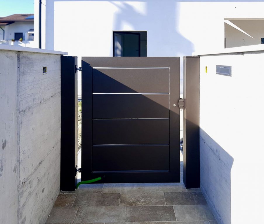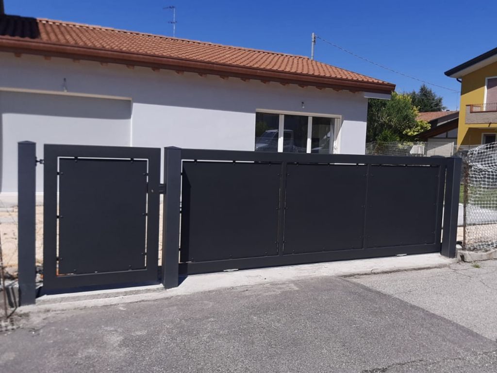 Produciamo cancelli su misura, pedonali e carrai scorrevoli e ad ante, acon intelaiatura in ferro zincato e verniciato, tamponati con lamiera cieca con ricavato disegno o scritta con taglio laser, oppure tamponati con ritti e/o figure a piacimento